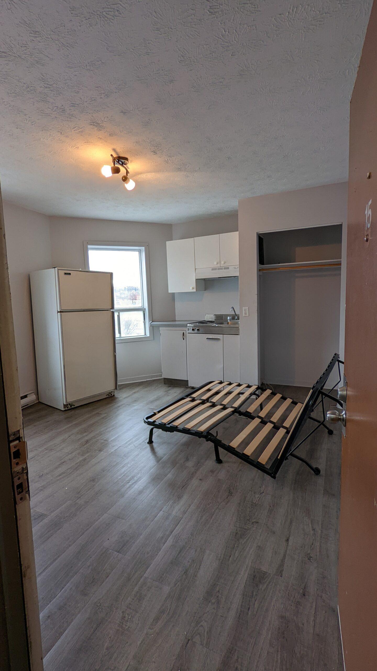 Vous cherchez un petit appartement pratique et tout inclus au cœur de Sherbrooke? Voici un endroit parfait pour vous! Ce studio est situé au 105 rue King Est, unité #15. Ce logement 1 ½ est parfait pour une personne qui veut vivre proche de tout. Ce qui est inclus : Internet illimité Chauffage Eau chaude Électricité Cuisinière et réfrigérateur Cet appartement a une vue incroyable sur le centre-ville de Sherbrooke, donc vous pouvez voir toute l’action depuis votre fenêtre. Emplacement idéal! Vous êtes à : 10 minutes à pied du Parc Jacques-Cartier pour vous relaxer ou marcher 15 minutes en autobus de l’Université de Sherbrooke Quelques minutes à pied des restaurants, cafés, et magasins du centre-ville Un logement confortable, pratique pour profiter de Sherbrooke. Intéressé? Appelez-nous pour une visite ou plus d'infos!